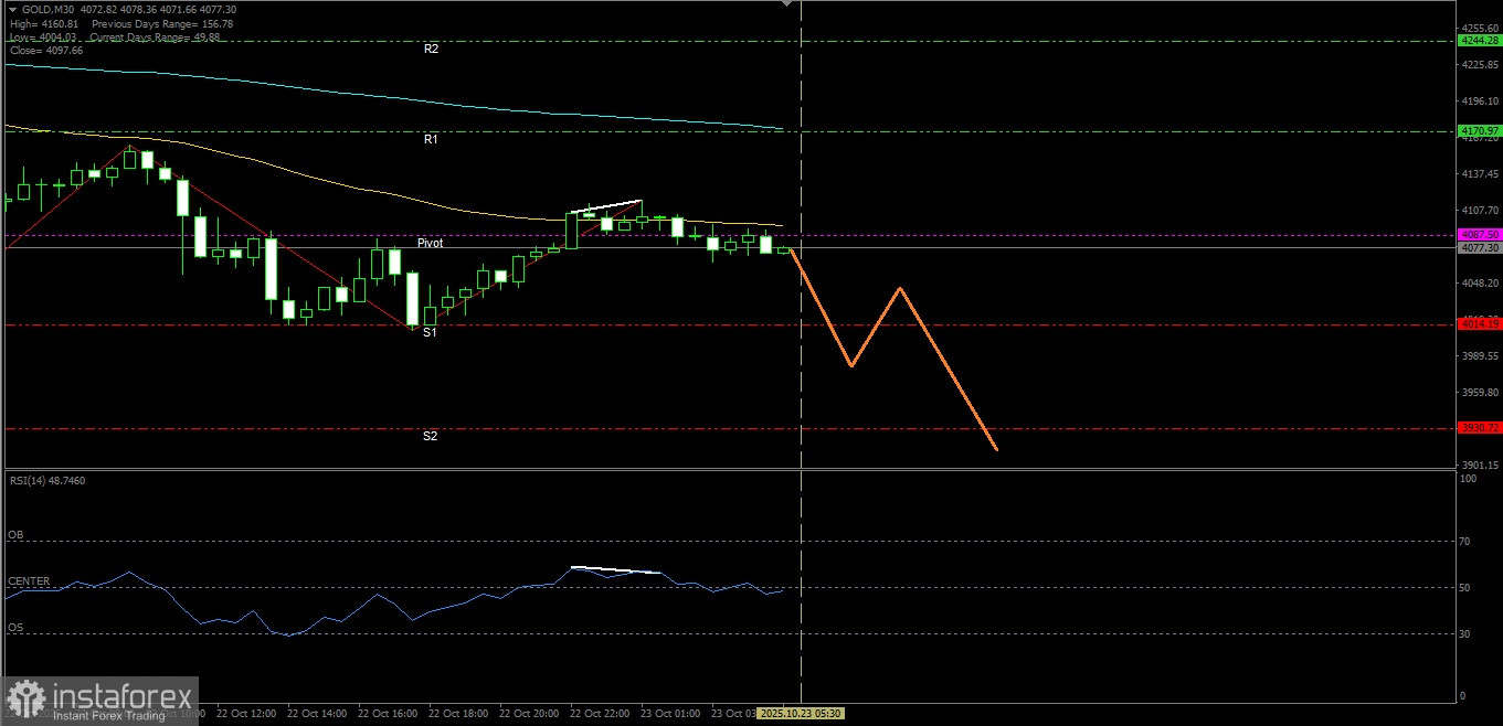 Emas nampak masih melanjutkan bias pelemahannya hingga ke level Support terdekatnya. Kamis, 23 Oktober 2025.