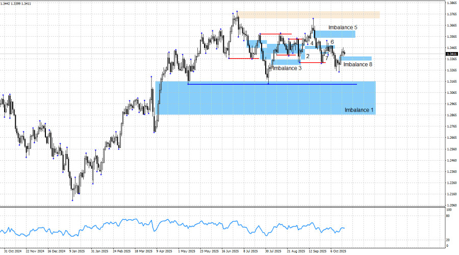 Реакция на ордер-блок – это сильный сигнал, после которого и началось последнее наступление медведей. Но в то же время информационный фон для доллара в 2025 году крайне редко бывает благоприятным, чтобы медведи атаковали постоянно. Давление Дональда Трампа на ФРС, фиктивные увольнения чиновников, вечная критика Джерома Пауэлла, продолжающая торговая война, «шатдаун» и новая эскалация торговой войны между США и Китаем – это те факторы, которые не позволяют мне прогнозировать рост доллара. Трейдеры в последнее время закрывали глаза на многий негатив в США, но на длинной дистанции принимают верные решения.