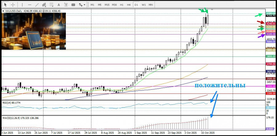 С технической точки зрения, пара XAU/USD продемонстрировала некоторую устойчивость ниже уровня $4240. Однако последующий рост столкнулся с препятствием на историческом максимуме вблизи уровня $4380.