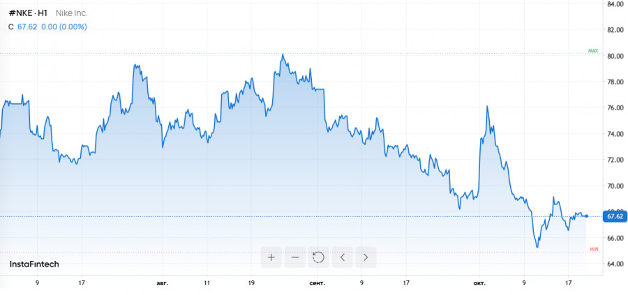 Инвесторы отреагировали падением: бумаги Nike подешевели на 15,5% за последний год и на 44% за пять лет, торгуясь на уровне $67,71 по состоянию на 20 октября.