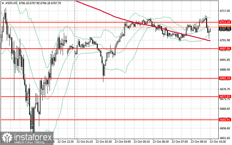 Что касается технической картины S&P500, то основная задача покупателей на сегодня будет заключаться в преодолении ближайшего сопротивления $6711. Это поможет показать рост, а также откроет возможность к рывку на новый уровень $6727. Не менее приоритетной задачей быков будет и контроль над $6743, что укрепит позиции покупателей. В случае движения вниз на фоне снижения спроса аппетита к риску покупатели просто обязаны заявить о себе в районе $6697. Пробой быстро столкнет торговый инструмент назад на $6682 и откроет дорогу к $6672.
