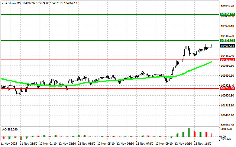 Сценарий №2: продавать биткоин можно от верхней границы $105 200 при отсутствии рыночной реакции на ее пробой в обратную сторону к уровням $104 200 и $102 700.