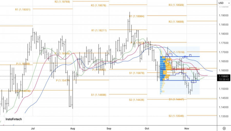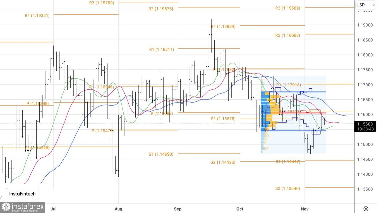 Технически на дневном графике EUR/USD пока котировки находятся выше нижней границы диапазона справедливой стоимости 1,154-1,168, следует делать акцент на покупки.