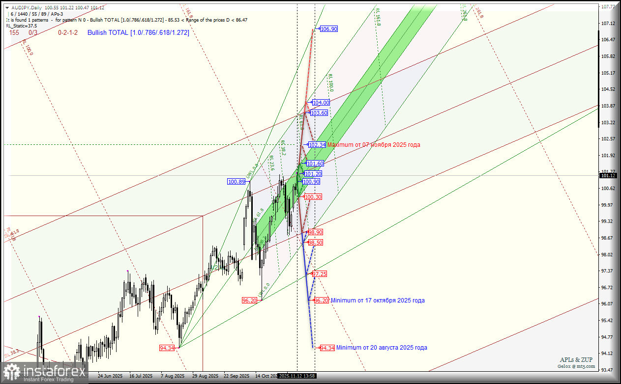 AUD/JPY - Daily - обзор вариантов движения с 13 ноября 2025 г.