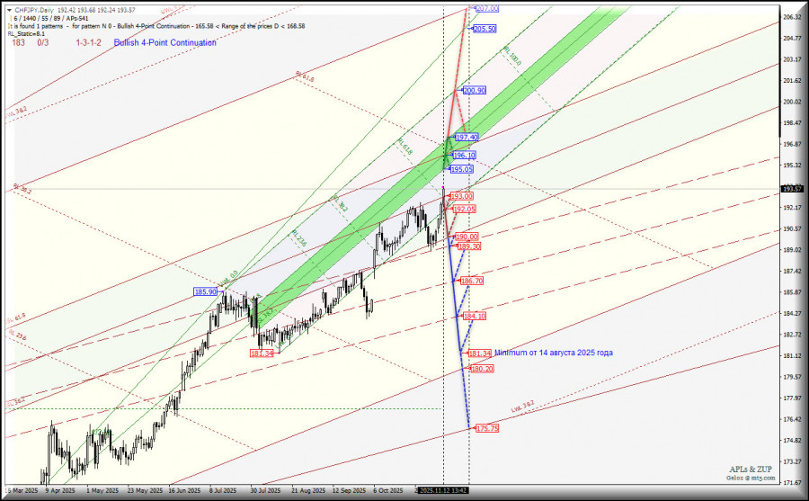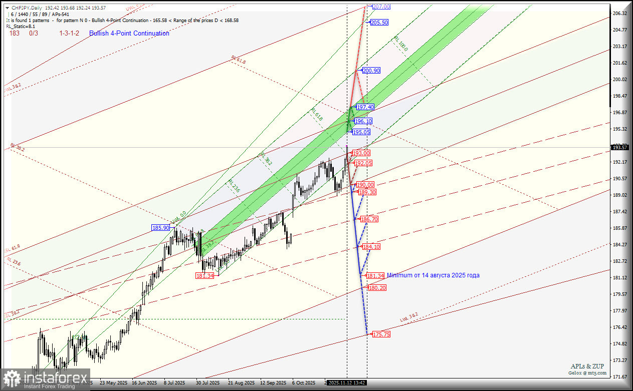 Swiss Franc vs Japanese Yen - Daily - вторая половина ноября - основные уровни для торговли. Комплексный анализ APLs & ZUP с 13 ноября 2025 года