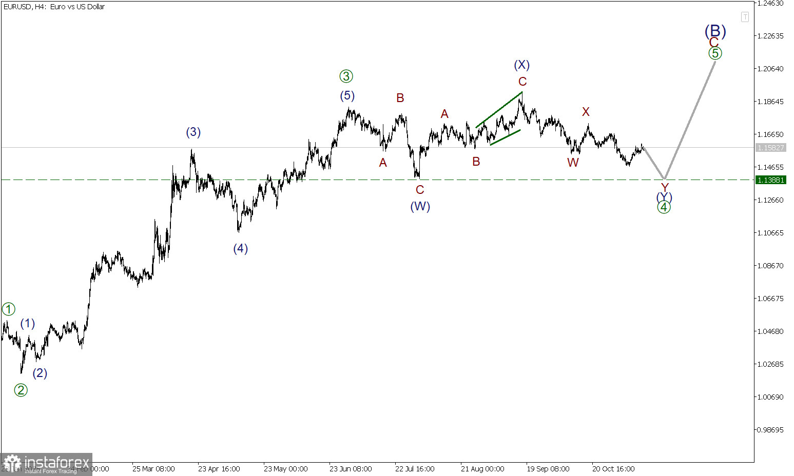 Предполагается, что в долгосрочной перспективе по валютной паре EUR/USD может строится крупная бычья коррекция (B), которая принимает форму стандартного зигзага A-B-C. На сегодняшний день полностью завершены только первые две его части - импульс A и коррекция B (их не видно на текущем графике)