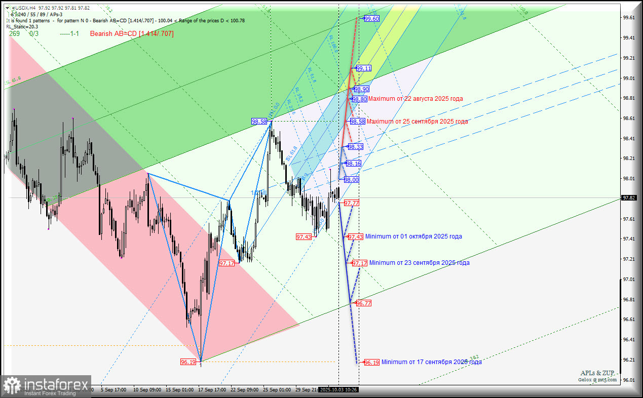 US Dollar Index - h4 - вторая неделя октября - основные торговые уровни. Комплексный анализ APLs & ZUP c 06 октября 2025