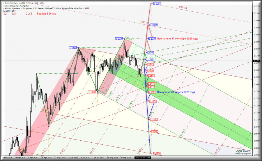 Euro vs US Dollar - Daily - исполняется попытка вернуться к максимум 1.1919 от 17 октября? Комплексный анализ APLs & ZUP с 20 октября 2025 года