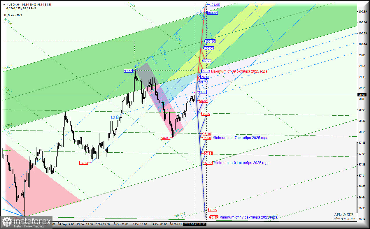 US Dollar Index - h4 - основные уровни для внутридневной торговли. Комплексный анализ APLs & ZUP с 22 октября 2025 года