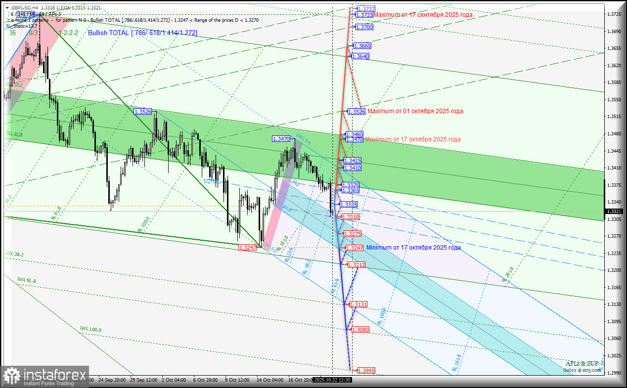 Great Britain Pound vs US Dollar - h4 - основные уровни для внутридневной торговли. Комплексный анализ APLs & ZUP с 22 октября 2025 года