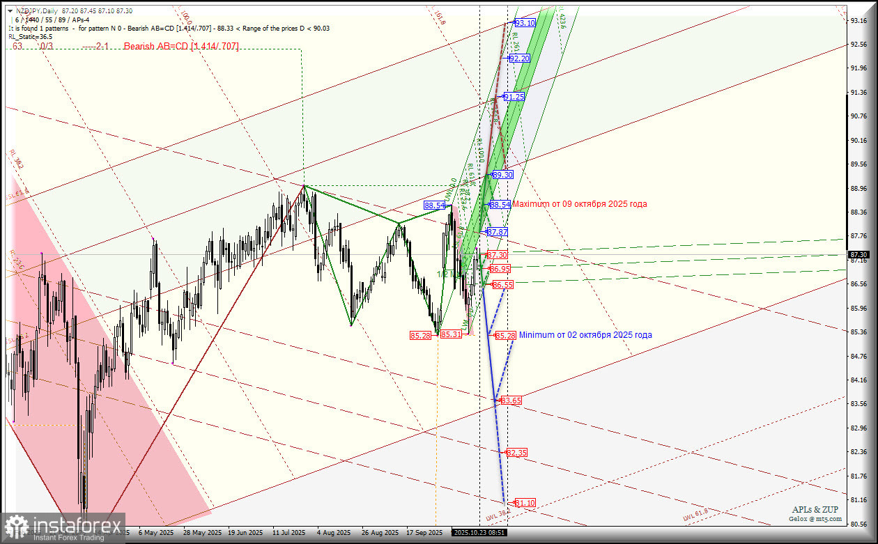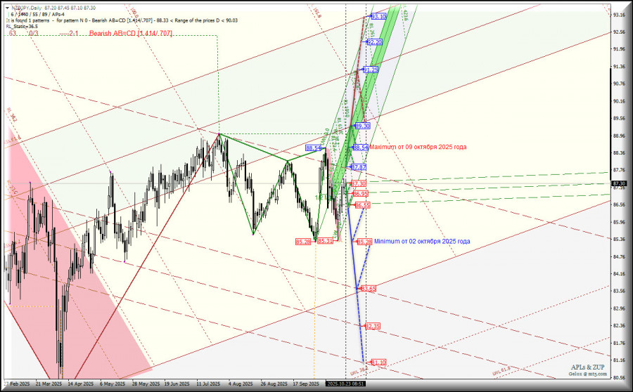 New Zealand Dollar vs Japanese Yen - Daily - конец октября - основные торговые уровни. Комплексный анализ APLs & ZUP c 24 октября 2025 года