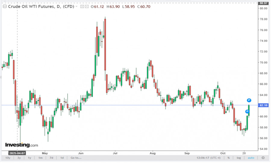 • Санкции против нефтяных компаний России: Правительство США объявило о введении новых санкций против крупнейших российских производителей нефти, таких как Роснефть и Лукойл, производящих более 5 млн баррелей в день. Эксперты считают, что это приведет к росту цен на нефть марки WTI, достигнувших сегодня отметки выше 62.00 долларов за баррель, поскольку российские производители занимают значительную долю мирового рынка нефти.