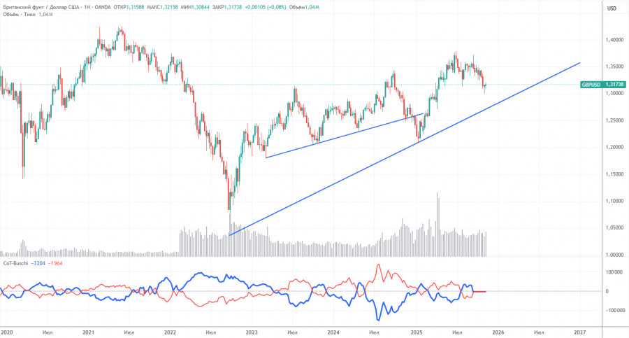 В 2025 году фунт очень сильно вырос, но следует понимать, что причина одна – политика Дональда Трампа. Как только эта причина будет нивелирована, доллар может перейти в рост, но когда это произойдет – не знает никто. Неважно, какими темпами растет или падает нетто-позиция по фунту. По доллару она в любом случае падает и, как правило, более высокими темпами.