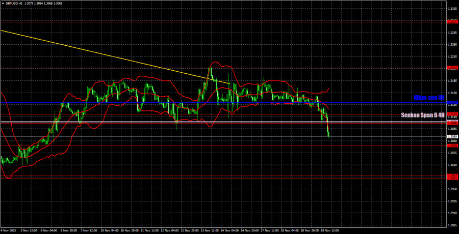 Торговые рекомендации и разбор сделок по GBP/USD на 20 ноября. Фунту стерлингов не везет.