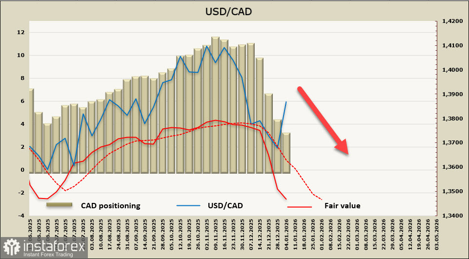 Гораздо больше на курс луни влияют внешние факторы, в первую очередь это спецоперация США в Венесуэле. Любой импорт венесуэльской нефти в США будет напрямую конкурировать с канадской нефтью на рынке Мексиканского залива, куда в настоящее время поступает лишь 10% (около 400 тыс. баррелей в сутки) от общего объема канадских поставок в США, при этом общий объем экспорта канадской нефти в США на текущий момент примерно в четыре раза превышает экспорт венесуэльской нефти. Если объявленным Трампом план по контролю над нефтью Венесуэлы получит реализацию, то для канадского доллара это будет означать дополнительный фактор давления, и именно поэтому луни снижается в январе вопреки всем прогнозам, рынок ждёт, чем закончится эта авантюра, то ли реальными последствиями, то ли дело ограничится пиаром, на который так падок президент США.