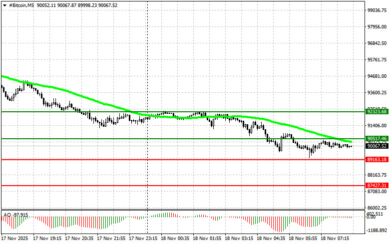1-senariy: Bugun Bitcoin'ni $90,500 atrofida xarid qilaman, maqsad narxi $92,300. $92,300 darajasida xaridlarni yopaman va sakrashda darhol sotasiz. Xaridni breakoutda amalga oshirishdan oldin 50 kunlik o'rtacha chiziq hozirgi narxdan pastda, Awesome Oscillator esa noldan yuqorida ekanligiga ishonch hosil qiling.
